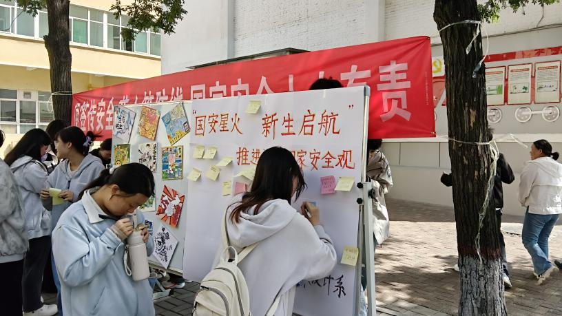活动现场,不仅将同学们创作的绘画进行展示,还设置了留言区。同学们纷纷在便签纸上写下对国家安全的理解、感悟以及维护国家安全的决心等内容,在轻松的氛围中深化了对国家安全重要性的认识,从“要我维护国家安全”向“我要维护国家安全”转变。